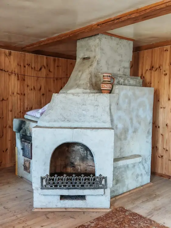 Сердце дома — уютный кирпичный камин, который не только согреет в холодные дни, но и создаст неповторимую атмосферу уюта. В интерьере использованы натуральные материалы: преобладают дерево и кирпич, что придаёт дому тепло и экологичность. Деревянные балки на потолке и дощатые полы добавляют особый шарм и колорит.