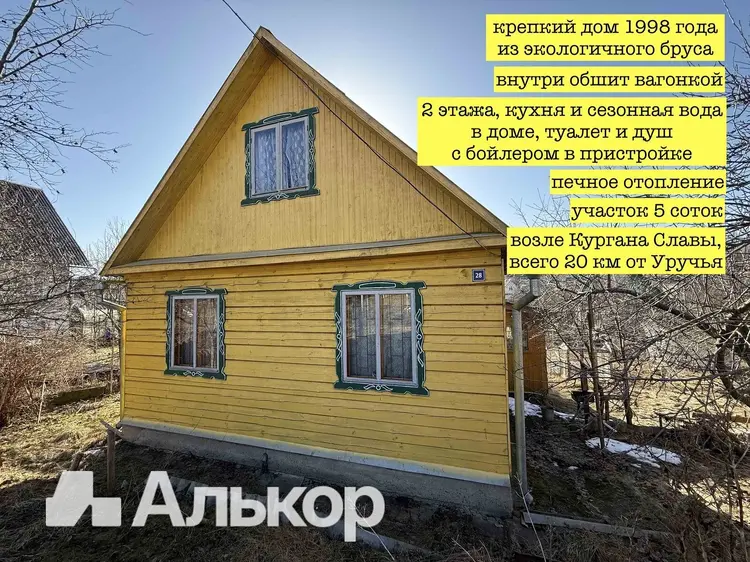 Крепкий добротный 2-х этажный дом из бруса (по фундаменту 6х6 м с пристроенной кухней в доме по фундаменту 2х6 м.) В доме 4 жилых комнаты, площадь дома 59 м2. Дом сухой с запахом натурального дерева, внутри обшит вагонкой. Вода сезонная в доме и на участке, отопление печное.