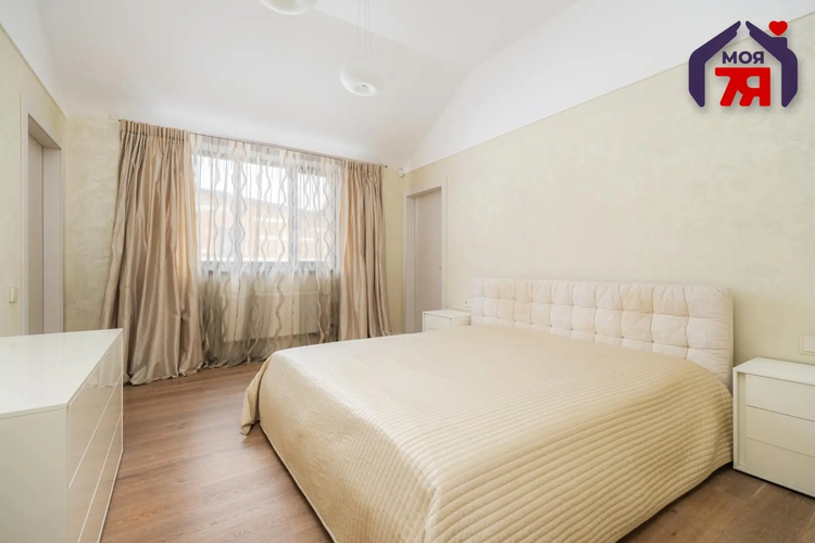 Премиум-дом по индивидуальному проекту, 14 км. от МКАД Уникальный кирпичный дом площадью 346 кв.м с собственной скважиной, теплым гаражом на два места, летней кухней и премиум-отделкой — идеальное жилье для тех, кто ценит комфорт, технологичность и природу в 14 км от Минска! Адрес: д. Юхновка, ул. Черничная -Дом построен по индивидуальному проекту профессионалами, которые предусмотрели всё на все случаи жизни. Площадь по СНБ составляет 346,4 кв.м — просторное и функциональное жилье для большой семьи. -Конструкция стен выполнена из полнотелого керамического кирпича с внутренним минераловатным утеплителем толщиной 100мм и воздушным вентилируемым зазором. Снаружи стены облицованы клинкерным бельгийским кирпичом, создавая вечный фасад, который не требует ремонта десятилетиями. -Крыша покрыта гибкой черепицей премиум-класса. Ленточный фундамент из ФБС блоков гарантирует надежность и долговечность. -Дом благоприятно ориентирован к сторонам света — целый день в помещениях царит естественный свет, создавая уютную и здоровую атмосферу. - Теплый гараж на два машиноместа оснащен автоматическими откатными роллетами, обеспечивая безопасность и удобство. -Инженерные системы высочайшего уровня: Собственная скважина на 63 метра с системой подготовки и фильтрации воды гарантирует независимость и качество водоснабжения. Местная переливная канализация не требует откачивания. - Газовый котел Vaillant с бойлером косвенного нагрева на 200 литров обеспечивает комфортное отопление. Система отопления комбинированная — теплые полы на первом и втором этажах плюс радиаторы с термоголовками для максимального контроля температуры. Вся система выполнена из медных труб — символ качества и долговечности. -Автоматизированный генератор защищает дом от отключений электроэнергии — вы всегда в безопасности и комфорте. -Отделка премиум-класса: Полы выполнены из качественного паркета и высокопроизводного ламината. Стены украшены венецианской штукатуркой, создавая атмосферу европейского шика. -Окна на заказ — деревянные двойные стеклопакеты обеспечивают отличную теплоизоляцию. Межкомнатные двери — премиум итальянского производства. Смесители Hansgrohe, мойки и ванная Duravit — немецкое качество и элегантность. На втором этаже сантехника Villeroy. -Кухня оснащена столешницей из натурального камня, холодильником Libherr, духовым шкафом и варочной панелью Bosch импортного производства. -Дом продается с мебелью и техникой — вы въезжаете полностью готовым к жизни! -Оптоволокно разведено по всему дому, обеспечивая высокоскоростной интернет. -На участке выполнен профессиональный ландшафтный дизайн с плодовыми деревьями и система автополива, которая забирает заботу о саде. Летняя кухня полностью готова к эксплуатации — идеальное место для семейных застолий на природе. -Дом расположен в экологически чистом загородном районе, всего в 14 км от Минска — вы живете в заповеднике природы, оставаясь в удобной близости от столицы. Рядом проходит маршрут общественного транспорта. -Инфраструктура района развита и удобна: в шаговой доступности расположена действующая православная церковь в честь святителя Николая, создающая духовный центр жизни. В 500 метрах находится Научно-практический центр медицинской реабилитации. В 16 км расположены Минская областная клиническая больница и Д