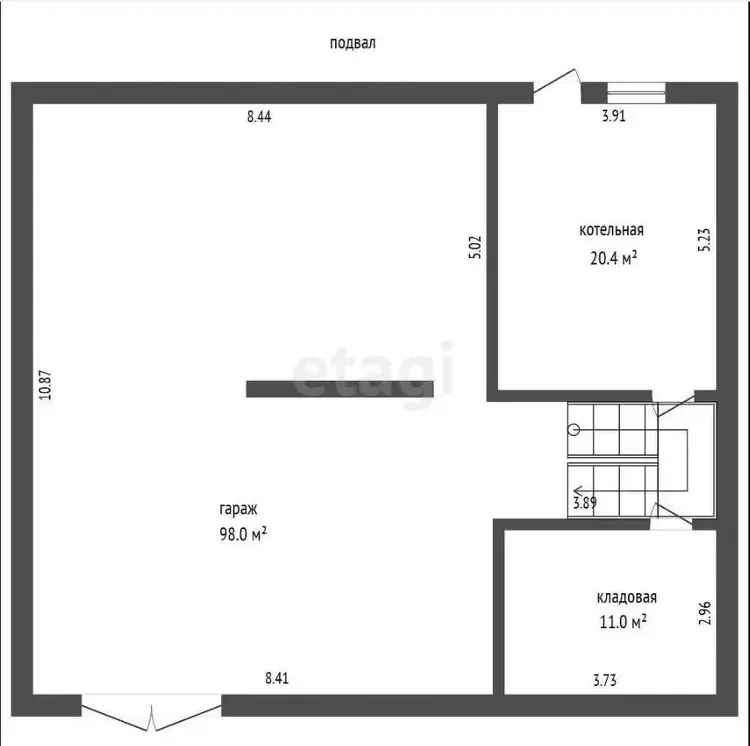 -- Цоколь – h 2.60m, гараж, комната, кладовая.