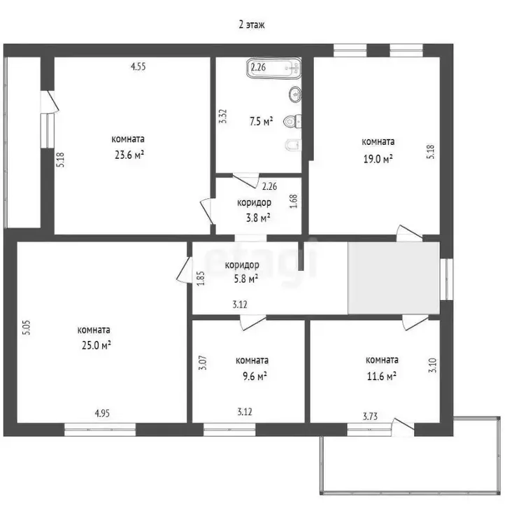-- 2-й этаж – h 2.80m, 5 жилых комнат, санузел.