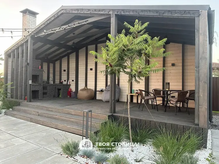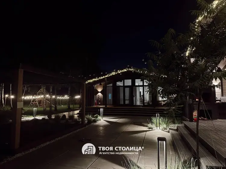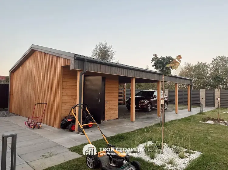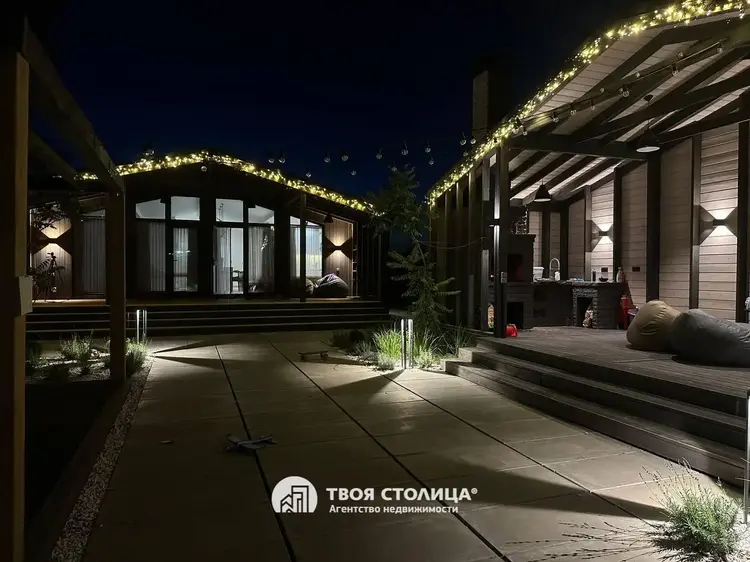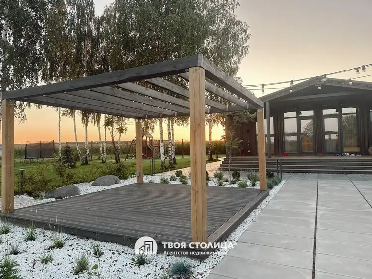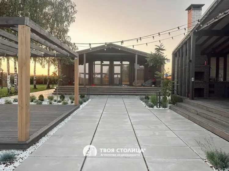 Современный дом в стиле barnhouse с гостевым домом, участком 30 соток и роскошным ландшафтом — для жизни в гармонии с природойПродается стильный загородный дом в актуальном архитектурном стиле barnhouse.Расположен на крайнем участке площадью 30 соток, где царит особенная тишина: только один соседний дом, а с трёх сторон открываются бескрайние луга и поля. На участке более 30 взрослых деревьев, которые были вписаны в ланшафт. Имеется площадка для медитаций.Это место, где можно наслаждаться природой, встречать рассветы с чашкой кофе и проводить вечера под открытым небом в кругу семьи и друзей.Основной дом — 142 м²Просторная гостиная, объединённая с кухней, станет сердцем вашего дома: здесь удобно собираться всей семьёй и принимать гостей.Четыре спальни: мастер-спальня для родителей и три уютные детские комнаты с индивидуальными гардеробными.Два стильных санузла для максимального комфорта.Полностью реализованный дизайн-проект интерьера: вся мебель выполнена на заказ, встроенная техника высокого класса.Натуральные материалы, тёплые полы по всему дому, продуманный свет и текстуры создают ощущение уюта и элегантности.Фундамент свайно-ростверковый (3 м), система отопления с электрическим котлом и тёплыми полами, современная приточно-вытяжная вентиляция, скважина глубиной 120 м с системой очистки воды, септик и ливневая канализация обеспечат вам полный автономный комфорт.Дом оборудован видеонаблюдением, сигнализацией и подключен к оптоволоконному интернету.Гостевой дом — 64 м²Уютное отдельное пространство для ваших гостей, старших детей или как идеальное место для личного кабинета или студии.Участок и территорияВаш участок — это 30 соток продуманного ландшафтного дизайна, реализованного по авторскому архитектурному проекту:широкоформатная плитка, рулонный газон, освещение и авто-полив для безупречной зелени;декоративные растения и мягкое вечернее освещение для особой атмосферы.Для отдыха на свежем воздухе — просторная беседка с летней кухней, где уже заведена вода, и вы сможете готовить, не отрываясь от общения.Для детей создана настоящая мечта: двухуровневая игровая площадка с качелями, лесенками и канатами, где они будут проводить целые дни на улице в радости и безопасности.Установлены автоматические распашные ворота и навес для автомобилей. Современный хоз блок. Дорога до самого дома — асфальт.ЛокацияДо большого чистого озера всего 10 минут пешком — можно купаться, рыбачить, гулять с детьми или устраивать пикники у воды.В посёлке есть магазины для ежедневных покупок (2 продовольственных и строительный). Есть школа, садик, дом культуры с кружками.Для кого этот дом?Для тех, кто ценит стиль, пространство и возможность жить в гармонии с природой, не отказываясь от современных удобств и безопасности.Это место, куда приятно возвращаться каждый день — и где каждое утро начинается с вдохновения.Дом обслуживается домработницей, садовником и газонокосильщиком.Звоните — с удовольствием расскажем подробнее и покажем ваш будущий дом! ООО "Твоя столица", УНП 101136973, лицензия №02240/15 от 17.02.05г.