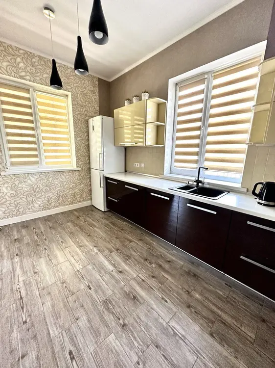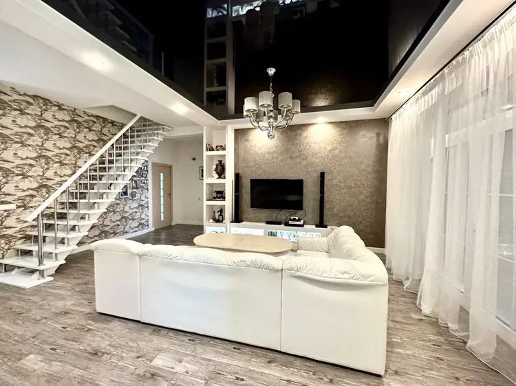 Дом полностью укомплектован всей необходимой мебелью и техникой. На кухне: газовая плита, духовой шкаф, вытяжка, микроволновая печь, посудомоечная машина, холодильник.Также имеется стиральная машина, бойлер, установлена система фильтрации воды - оионно обменная. Полы/плитка с подогревом в кухне, гостинной,санузле, коридоре. Остальные комнаты - ламинат. На стеклопакетах установлены москитные сетки.