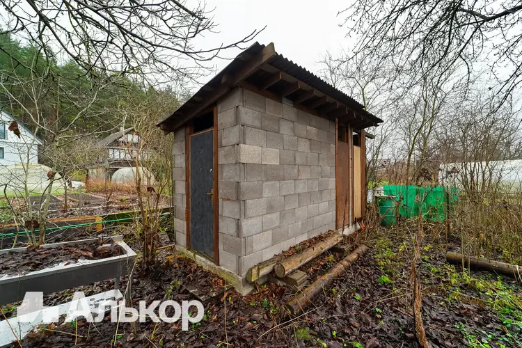 На участке расположен дом, гараж, теплица, хоз блок. В доме есть кухня и 2 комнаты.