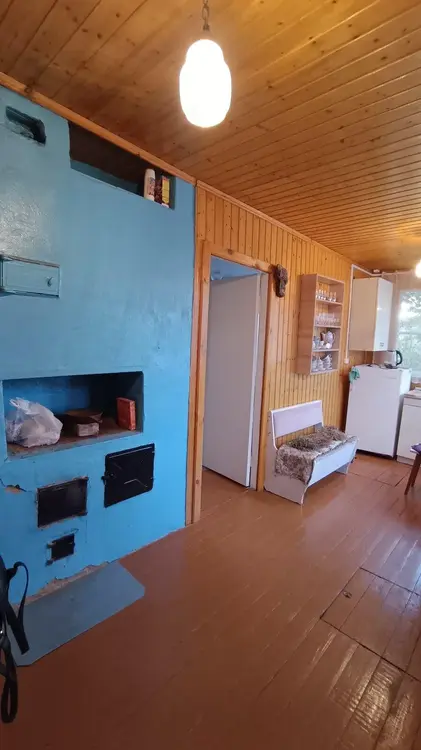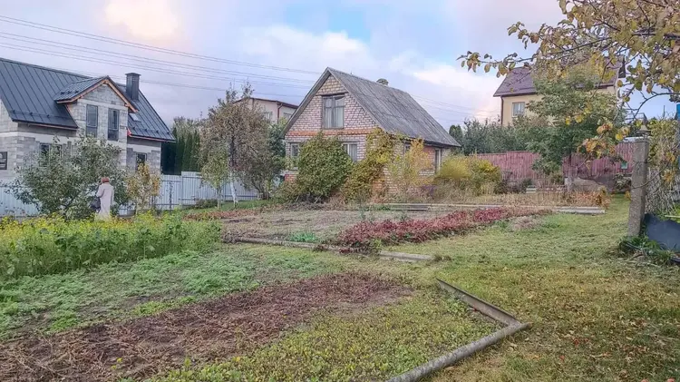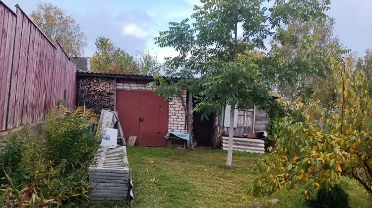 Участок 7,85 соток в частной собственности. Дом одноэтажный сборно-щитовой обложен кирпичом 34 м2 (две жилые комнаты). На участке есть гараж 6х3,8м, два сарая. Коммуникации: газ подведен к дому, отопление печное, электричество разведено по дому, водопровод сезонный на участке, по улице идёт центральный водопровод, туалет на участке.