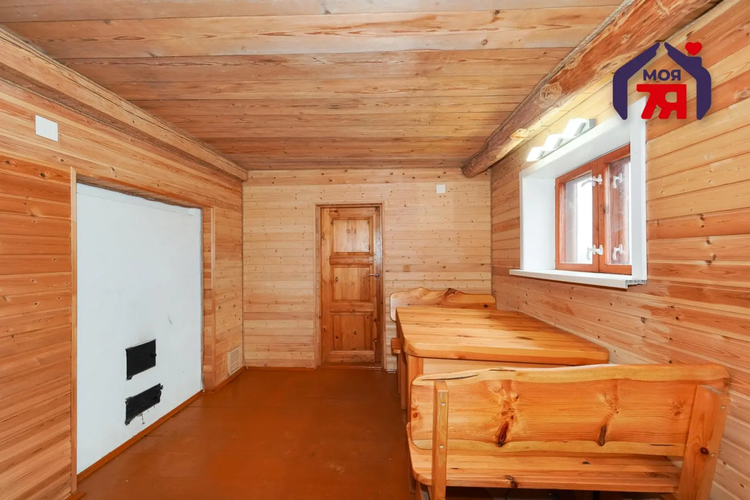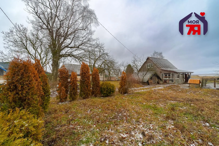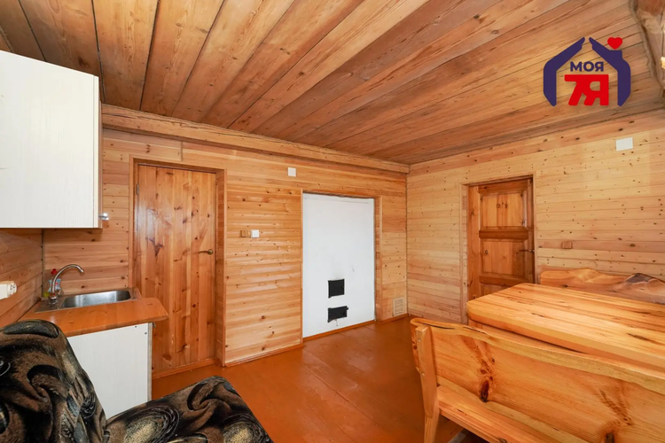 1. Бревенчатый дом площадью 54.3 кв.м. (8.6м 6.3м). К нему подведены водопровод от собственной скважины (глубина - 50м), электричество, местная канализация с двумя переливными колодцами, оптоволокно для интернета от Белтелеком. Крыша полностью изменена, создан высокий чердак, который можно переоборудовать в жилую мансарду. К дому пристроена веранда площадью 25 кв.м. (8.6м 2.9м). Установлены двухкамерные окна из ПВХ, общая кровля покрыта ондулином. После демонтажа старой внутрянки работы по облагораживанию дома не выполнялись, за исключением земляных работ, монтажа водопровода и канализации.