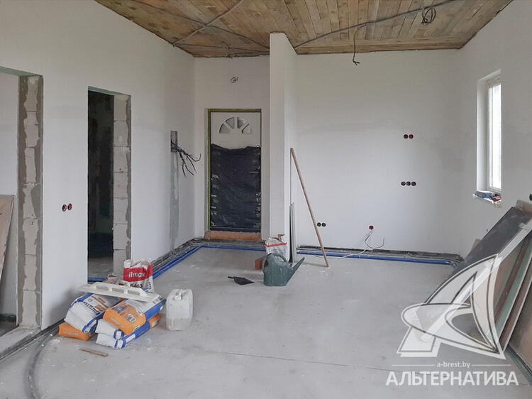 Коробка жилого дома в Жабинковском р-не. 2021 г.п. 1 этаж, мансарда. Общ.СНБ - 77,5 кв.м, общ.- 77,5 кв.м, жил.- 30,9 кв.м, кух.- 24,2 кв.м. 2 комнаты, высота потолка - 2,7 м.