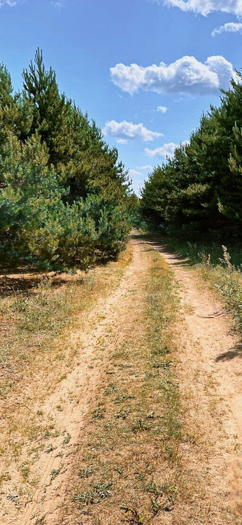 хорошие подъездные пути до самого дома, рядом с участком высажена аллея из молодых сосен (на фото).