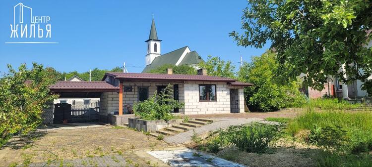 На участке находится просторный одноэтажный дом с просторной мансардой, общей площадью 330 м/кв. Крыша накрыта металлочерепицей, установлены пластиковые стеклопакеты и входные двери, залита черновая стяжка и лестница. Обустроена и облагорожена территория около дома.