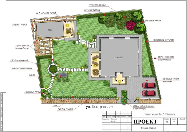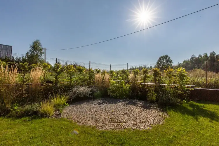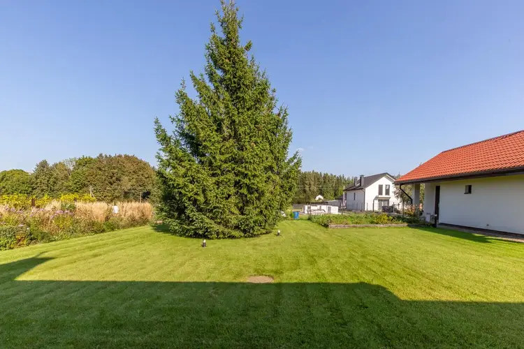 Продуманный ландшафтный дизайн участка, установлено наружное освещение, мягкий ухоженный газон. Действует автоматическая система полива с датчиками дождя.