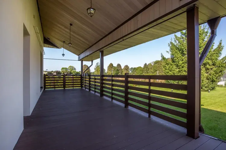 Характеристика дома: одноэтажный дом площадью 167,8 м2 (по СНБ). Возведён по индивидуальному архитектурно-строительному проекту. Имеется полная документация по проектированию и эксплуатации. В доме 4 раздельные жилые комнаты, гардеробная, кладовая, кухня, котельная и два санузла. В случае необходимости увеличения полезной площади чердачное пространство дома уже подготовлено под мансардный этаж. Здесь выполнены все черновые работы и подведены инженерные коммуникации (электрика, сантехника, отопление). Из кухни предусмотрен выход на террасу площадью 30 м2, оборудованною садовой мебелью, уличными светильниками и шторами. В доме установлена система сигнализации.