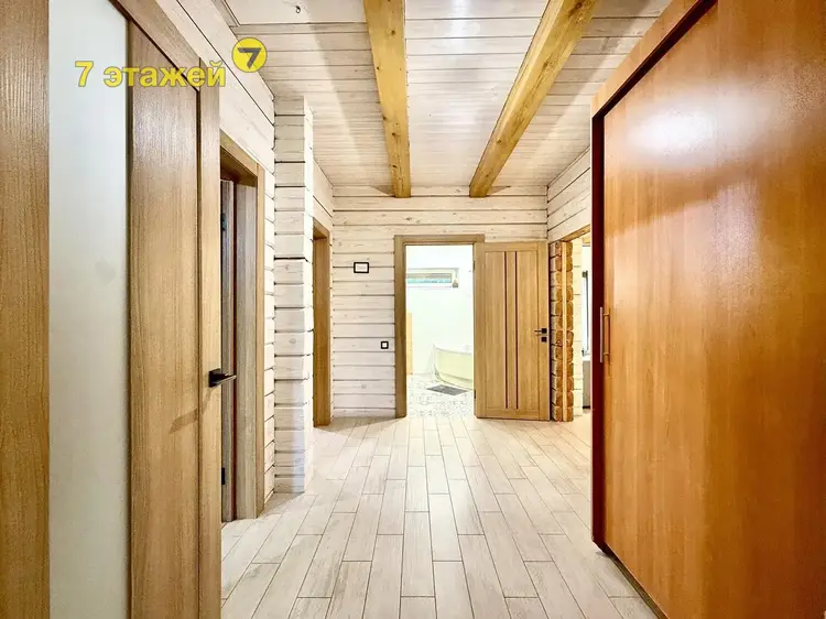 кухня: 12,4 м2, гостиная: 21,9 м2, ванная совмещенная: 6,6 м2, прихожая: 9,0 м2. застеклённая терраса: 5,1 м2, крытая терраса 25 м2. На входе в дом утеплённый тамбур с мини-котельной, из гостиной имеется выход на просторную крытую террасу 25 м2.