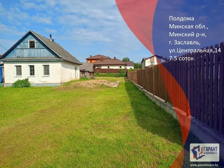 В продаже полдома, участок 7.5 соток в г. Заславль, в престижном районе.