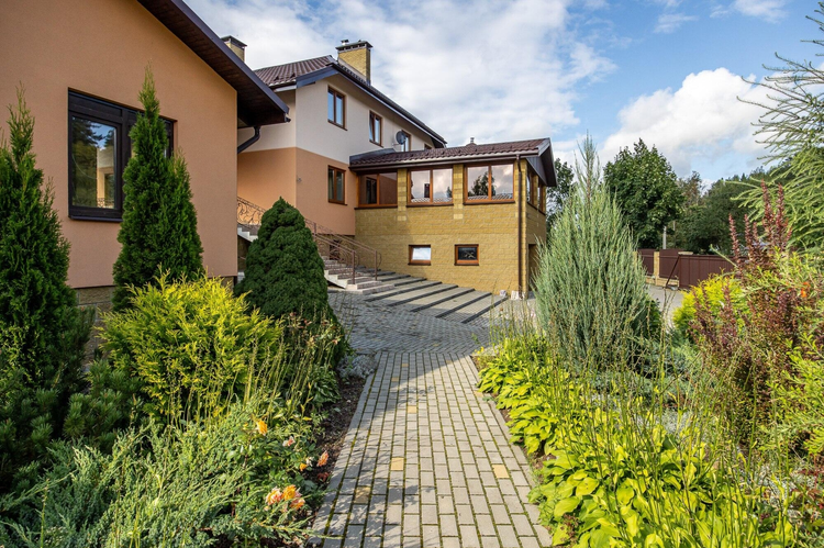 Ухоженная территория; Выложены плиткой дорожки и двор, посажен газон;