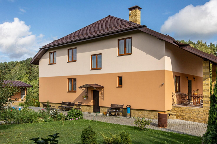 О Вашем доме,- основная часть дома-блок уложенный в 50см толщины наружной стены, который оштукатурен и покрашен. Благодаря такой толщине не нужен кондиционер, прохладно летом, тепло зимой.