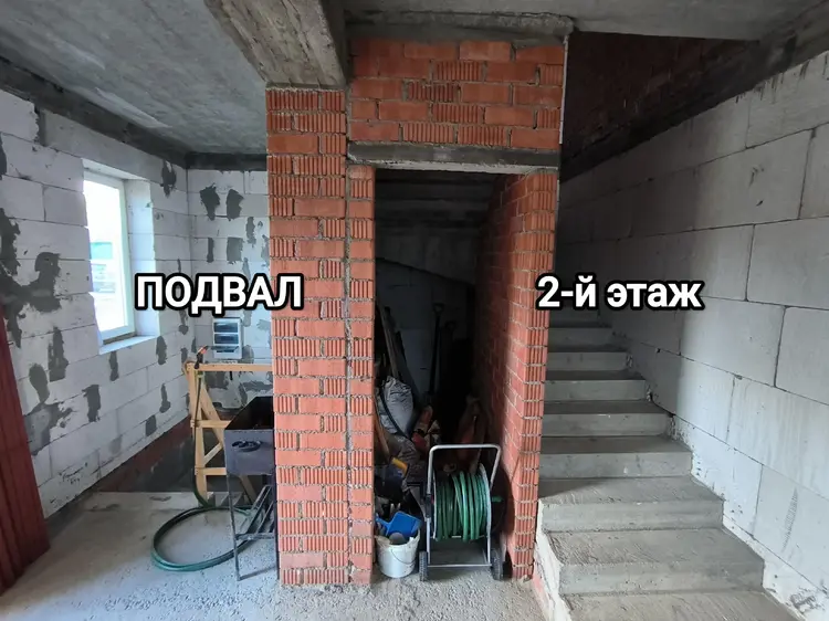 Вентиляционные каналы и перегородки в доме выполнены из красного кирпича.