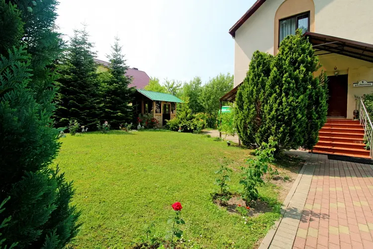 К дому ведет асфальтированная дорога, что обеспечивает удобный доступ.