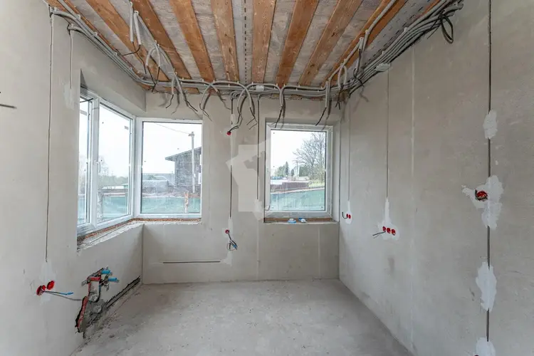 По планировке 4 изолированных комнаты, кухня совмещена с гостиной и выходом на террасу. В комнате много света за счет окон в пол.