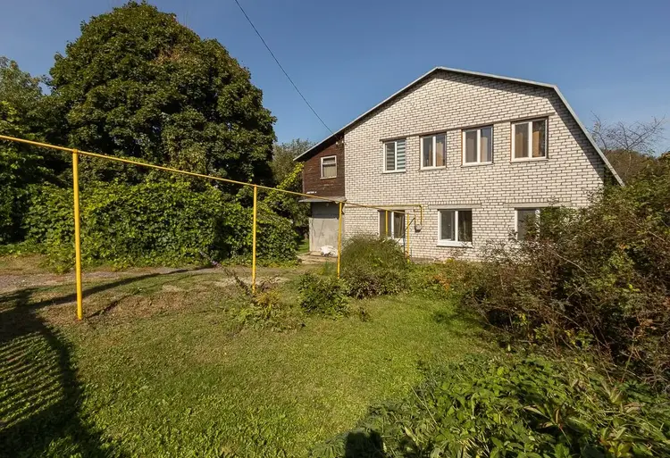 Материалы: фундамент – бутобетонный, стены – бревно облицованное кирпичем, крыша – сметаллическая. В доме два входода, можно проживать разными семьями по желанию.