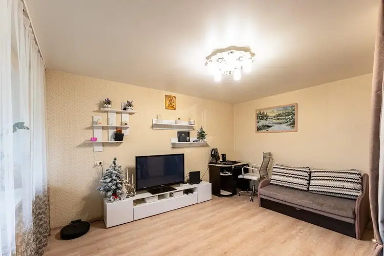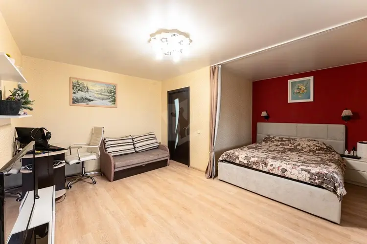 Отличная планировка жилой комнаты, есть возможность зонировать спальное место с гостиной.