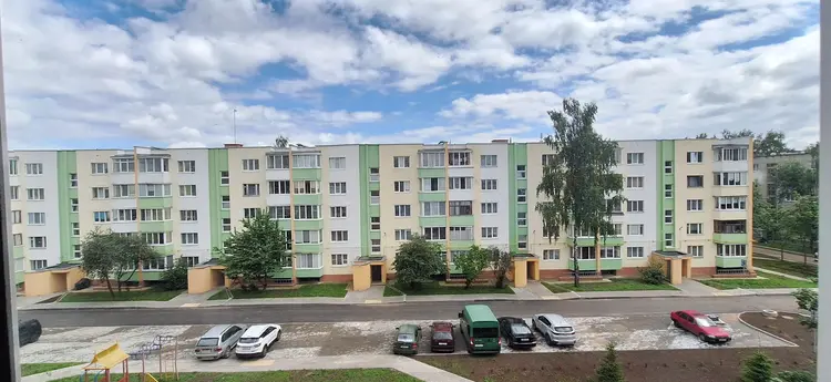 Продается светлая двухкомнатная квартира (48,6 м2) в ближайшем пригороде: город Заславль, микрорайон 1, дом 6.