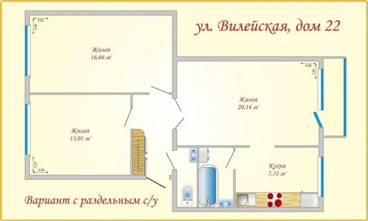 Особенностью квартиры является отдельный вход и небольшой палисадник