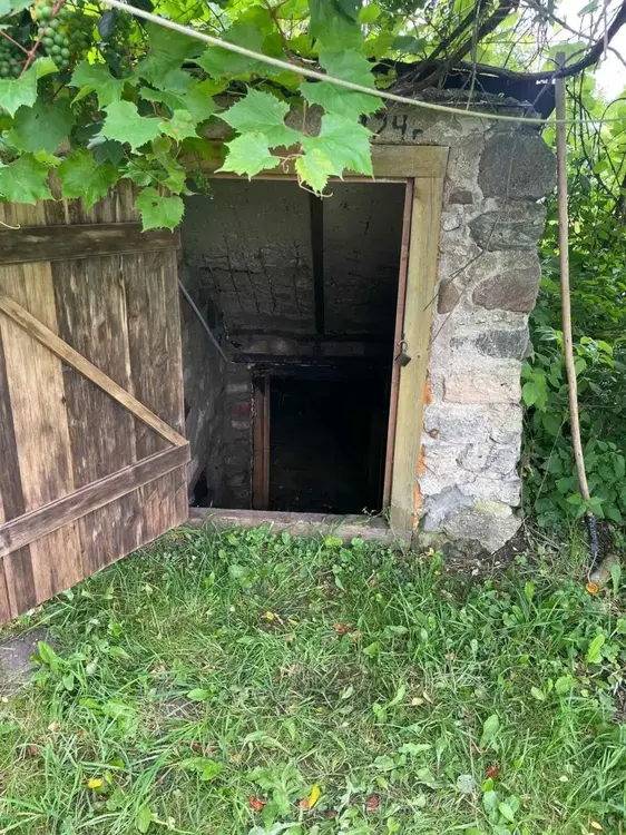 На участке есть баня и настоящий погреб, а также замечательный сад – вишня, сливы, яблони, алыча, виноград.