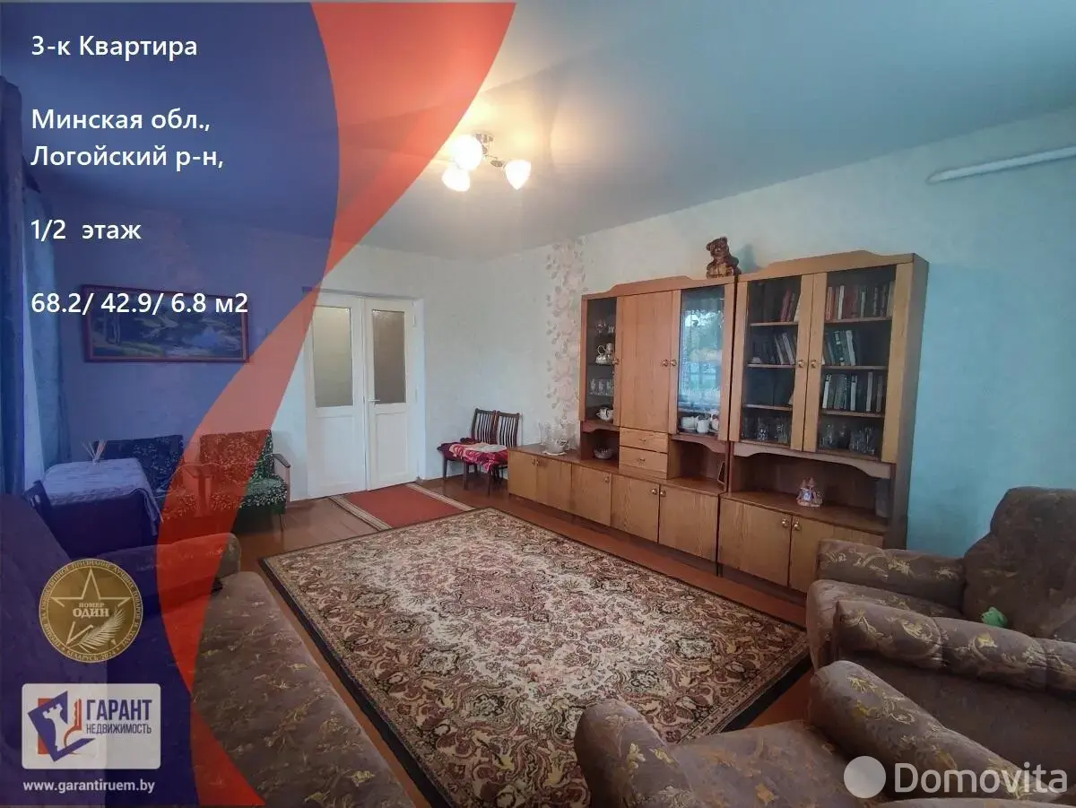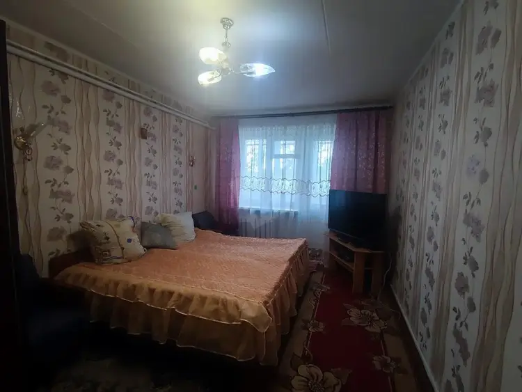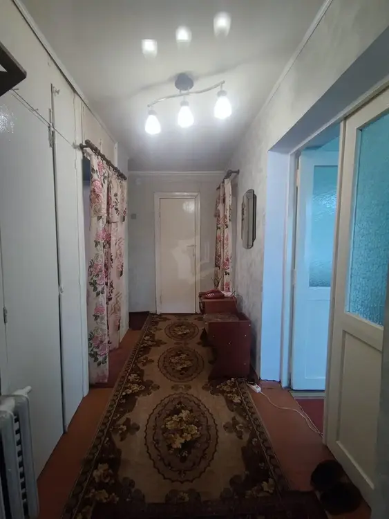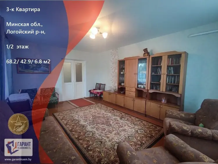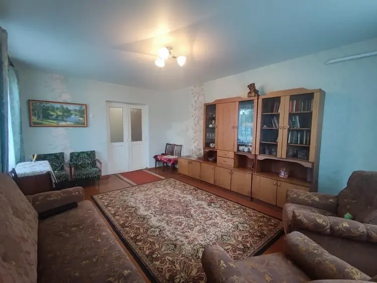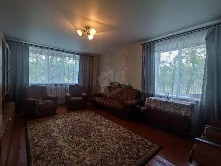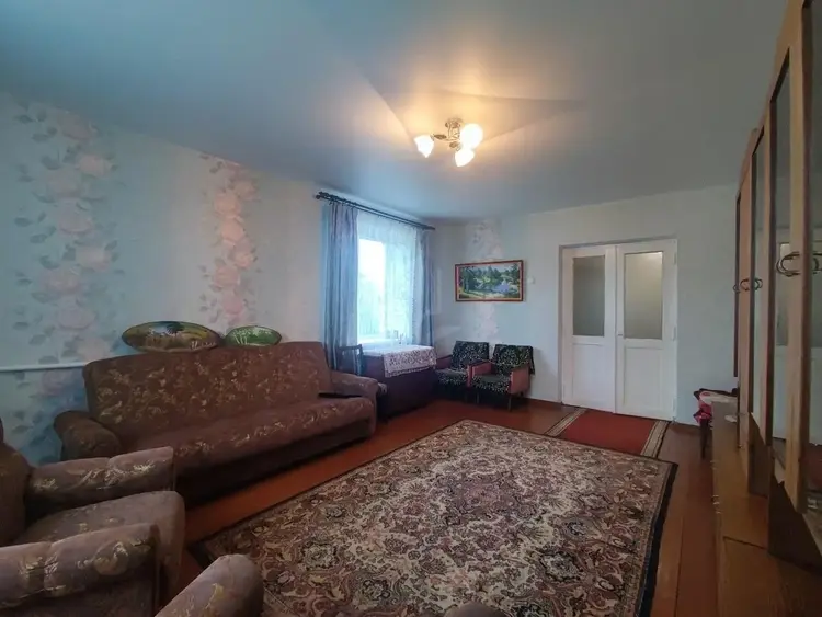 Расположена на 1 этаже 2-этажного кирпичного дома. Общая площадь - 61,4 м2, площадь кухни - 6,8 м2. Санузел раздельный, лоджия застеклена. Квартира светлая и чистая, сантехника в хорошем состоянии, вся мебель остается. Пол - дерево в хорошем состоянии, двери - дерево. Газ - баллон, отопление - котёл на твёрдом топливе, с возможностью перевести на электро-отопление.