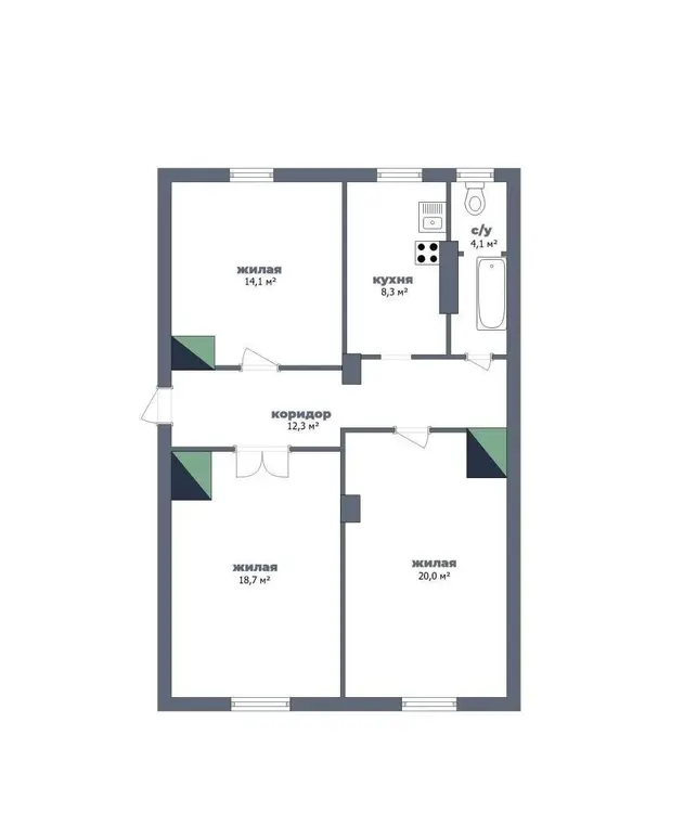 Эта квартира площадью 77,5 кв.м. – чистый холст для ваших дизайнерских фантазий!