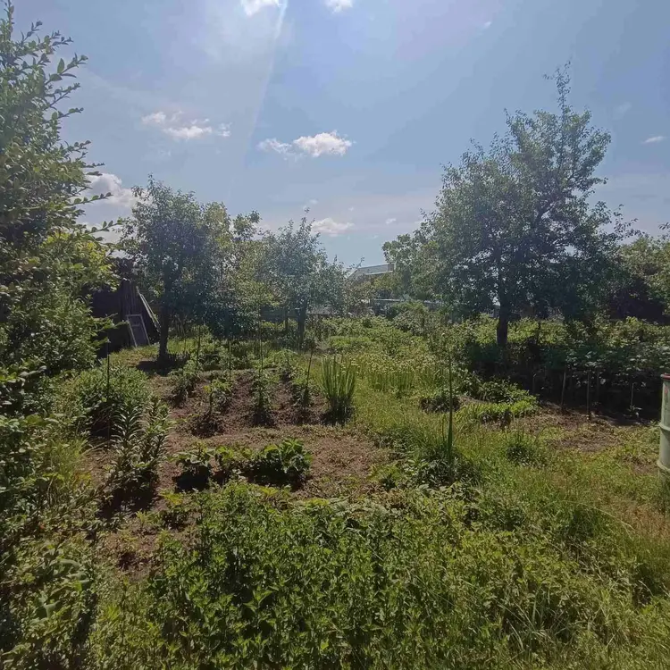 Ухоженный участок площадью 9,8 соток с насаждениями: орех, яблони, груши, вишня, крыжовник, малина, виноград и другие плодовые культуры, а также плодородная земля.