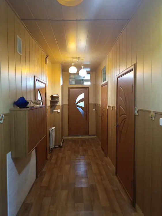 В доме есть все необходимые коммуникации для комфортной жизни: газовое отопление, центральное водоснабжение, местная канализация. Установлены окна ПВХ. Внутренние помещения включают теплую гостиную, просторные комнаты и совмещенный санузел.