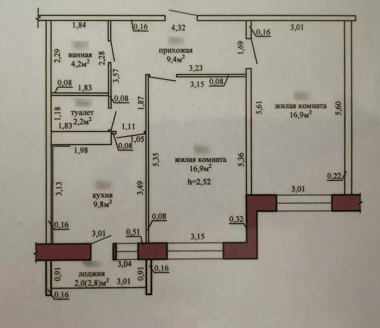 Квартира расположена на 7 этаже. Общая площадь по СНБ составляет 61,4 м², жилая площадь — 33,8 м², кухня — 10,0 м². Планировка удачная: прихожая 9,4 м², две равнозначные изолированные комнаты, раздельный санузел, застекленная лоджия. Пол ламинат, потолки выравнены, входная дверь металлическая. Чистый подъезд с большим лифтом. Квартира продается без мебели.