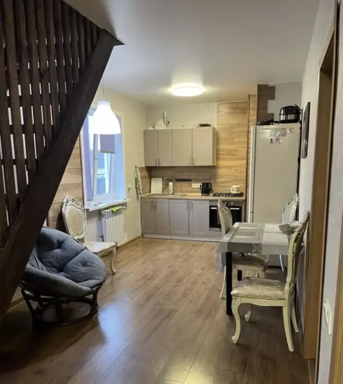 2008 год постройки. Стены оклеены импортными обоями, натяжные потолки, полы-ламинат, импортная сантехника, деревянная лестница. Двери массив.
