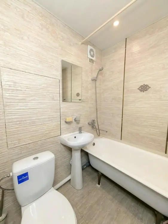 В санузе установлена новая сантехника, заменены трубы.