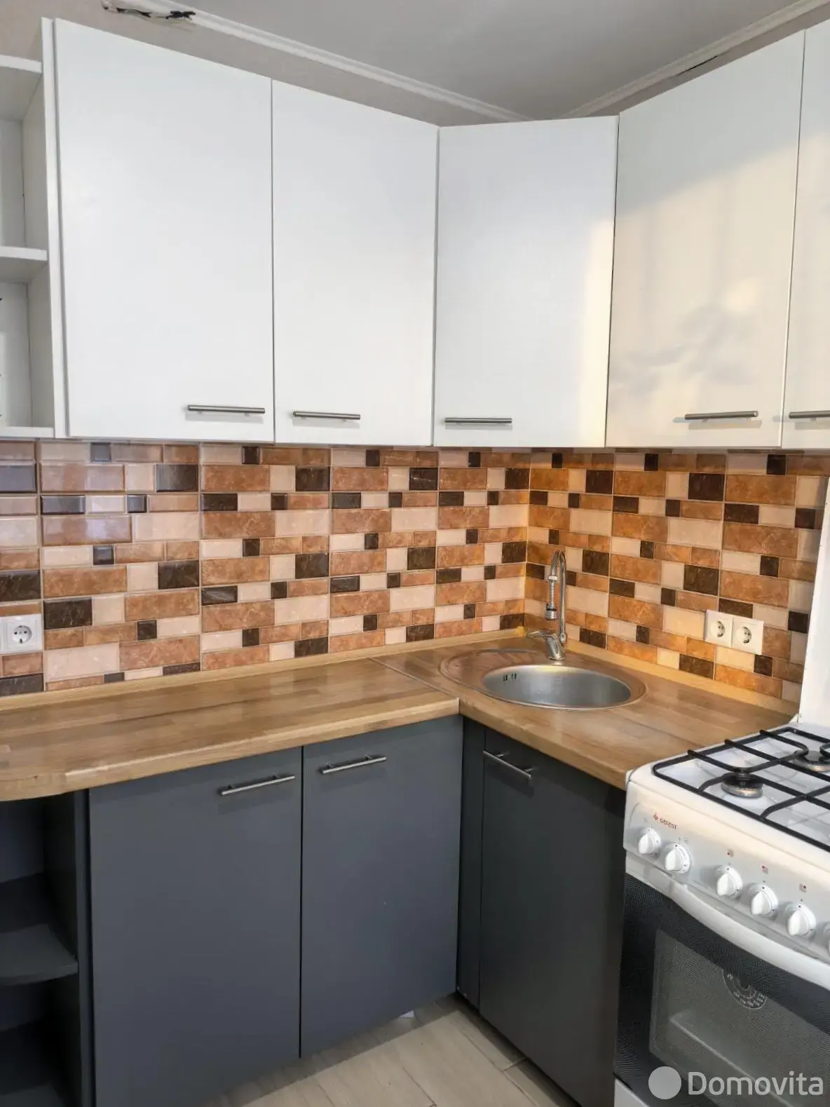 Остаётся встроенная кухня, шкаф, диван, карнизы, люстры. Можно сразу жить.
