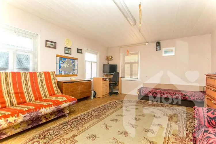 -Дом имеет прочный высокий фундамент, обеспечивающий долговечность конструкции. Кровля покрыта металлическими листами.